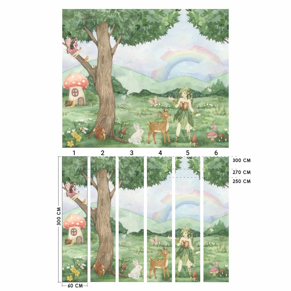 Celá tapeta se skládá z 6-ti částí. Části na sebe pěkně navazují i kdybyste pokračovali dál (tedy ik 6. části pěkně navazuje opět část 1). Každá část tapety má šířku 60 cm, a proto je jen na vás, které části z tapety si vyberete.