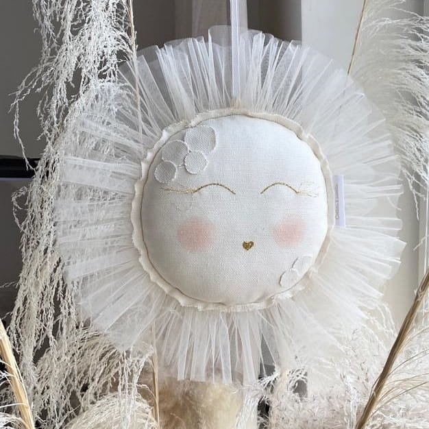 Nádherná závěsná dekorace sluníčka nad dětskou postýlku či do dětského koutku s baldachýnem.
